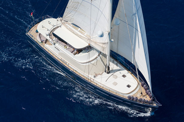 She is cutter rigged with powered furling for the headsails. With an LOA of just over 28 metres and a LWL of nearly 26 metres her twin Caterpillars can deliver 12 knots. She is extremely economical at speeds around 8 knots giving her a range of over 2,000 nautical miles under power.